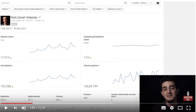 Sadece YouTube'dan 500 bin TL'ye yakın gelir
