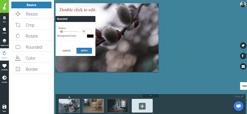 Bu templateler dışında fotoğrafınızı düzenlemek için size bir çok araç sunan Watermark.ink ile fotoğrafı kesebilir, boyutlandırabilir ya da kenarlarını yuvarlayabilirsiniz.