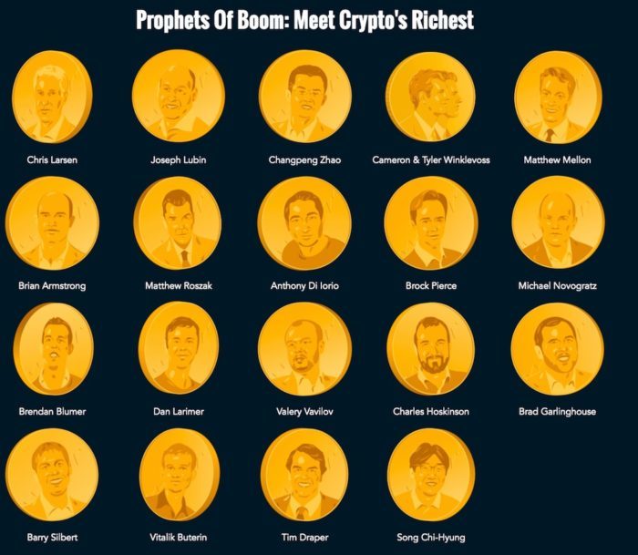 Dünyanın en zenginlerini listelemesi ile ünlü yayın Forbes, geçtiğimiz günlerde ilk defa kripto para zenginleri listesi yayınladı. Forbes editörü Randall Lane’e göre bu listeyi hazırlama sebepleri insanların, kripto paraları yasadışı işlerde kullanılan bir şey olmaktan çıkarıp, gelişmekte olan meşru bir varlık sınıfı olarak görmek istedikleri için.