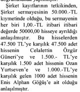 Güncelleme: Özgür Güneri'nin yüzde 95 hisseye sahip olduğu 6 Şubat 2018 tarihli Ticaret Sicil Gazetesi'nde de de yer almaktadır.
