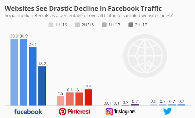 Son olarak statista'nın Shareaholic'den edinilen veriler ile paylaştığı bir grafik de Facebook'un geçen 2 yıllık süre içersinde web sitelerine yönelik düşen trafiğin resmini bir kez daha gösteriyor. Facebook'un 250.000 web sitesinden yapılan ziyaretlerin payı 2016 yılının ikinci yarısında yüzde 30.9 iken 2017 son altı ayında yüzde 18.2'ye düştüğünü görüyoruz.