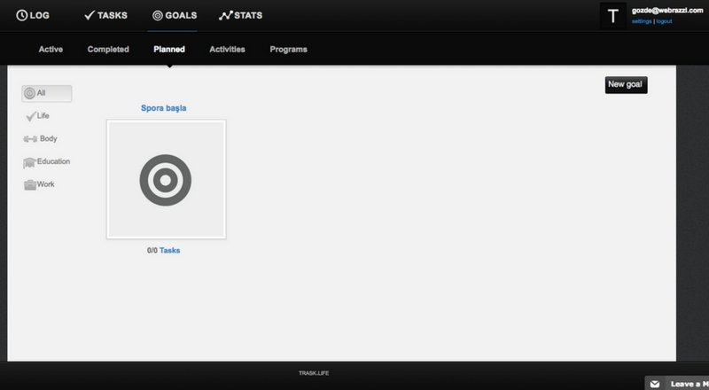 Sadece online olarak kullanabildiğimiz Trask'ı diğer yapılacaklar listelerinden ayıran bazı özellikleri var. Basit bir üyelikle kullanmaya başlayacağınız site, yapmak istediklerinizi yazdığınız bir platform olmasının dışında, hedeflerinizi ve neyi ne seviyede yaptığınızı da ekleyebildiğiniz bir data işlevi görüyor. Diyelim ki spora başlamayı ve başladıktan 1 ay sonra beş kilo vermeyi hedefliyorsunuz. Bunu sitedeki "Goals" kısmına "planlanan" şeklinde ekliyor, daha sonra başlamayı düşündüğünüz tarihi seçiyorsunuz.