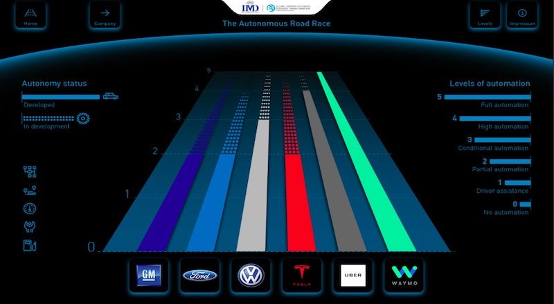 Volkswagen, Ford ve General Motors gibi köklü şirketlerin de yanı sıra Tesla, Uber ve Waymo gibi yeni nesil şirketler de otonom araç dünyasına yatırım yapıyorlar. Peki bir değerlendirilmede 6 marka karşılaştırılsa hangi şirketler yüksek puan alır? Köklü araç üreticileri mi? yoksa Silikon Vadesi'nde doğan yeni nesil şirketler mi? International Institute for Management Development (IMD) markaları analiz ederek yanıt vermeye çalışmış.