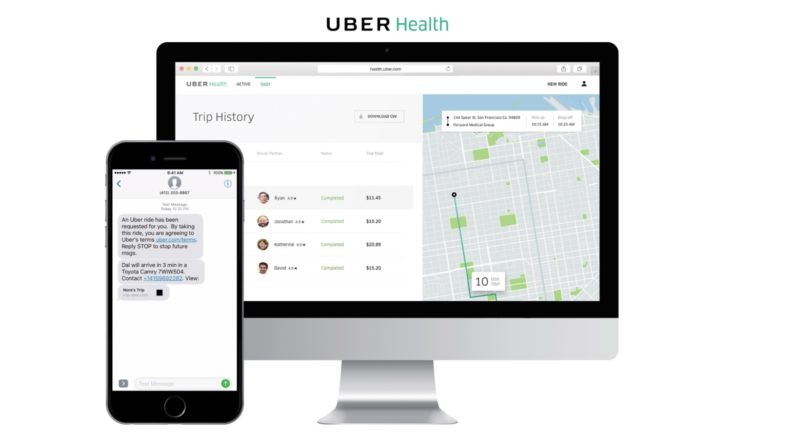 Araç paylaşım uygulaması Uber, klinik, hastane ve rehabilitasyon merkezi gibi sağlık kuruluşlarına özel hizmeti Uber Health'i yayına aldı. Uber, bu yeni ürünüyle maliyeti düşürerek sağlık kuruluşlarında kullanılan taksilerin yerini almaya çalışıyor. Sağlık kuruluşlarına sunduğu özel bir panel üzerinden hareket eden şirket, ABD'deki Sağlık Sigortası Taşınabilirlik ve Sorumluluk Yasasına da uyum sağlıyor.