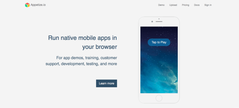 Appetize.io, tarayıcınızda deneyimleyebileceğiniz bir iOS simülatörü. Uygulamanızı ZIP dosyası formatında yüklüyorsunuz ve Appetize.io size uygulamanız için oluşturdukları iOS simülatörünün linkini mail atıyor. Farklı iOS cihazlarında görebildiğiniz uygulamanızın simülatörünü tanıtım amaçlı kullanabiliyorsunuz. Appetize.io'nun ücreti kullanıcı sayısı, simülasyon süresi ve hizmetlerinin çeşitliliğine göre ayda 2000 dolara kadar çıkabiliyor.