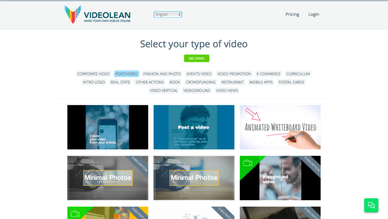 Videolean, dakikalar içinde ürününüzü tanıtan profesyonel bir video hazırlamanızı sağlayan online bir araç. Platform üzerinden amacınıza uygun bir şablon seçiyorsunuz; yazı, görsel ve seslerde değişiklik yaparak kişiselleştiriyorsunuz ve videonuzun yüksek çözünürlüklü paylaşılabilir haline ulaşıyorsunuz. Videolean her adımda sizi yönlendirerek süreci kolaylaştırıyor. Videolean’in ücreti oluşturabileceğiniz video sayısı ve hizmetlerinin çeşitliliğine göre ayda 29 ile 299 dolar arasında değişiyor.