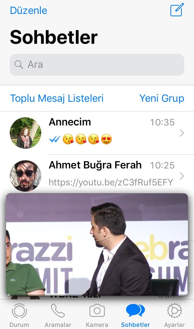 Bu özelliğin bir diğer güzel yanı ise YouTube videoları izlerken sadece ilgili sohbet penceresinde kalmanız gibi bir şart bulunmaması. Video yerleştirmeleri bir widget gibi çalışıyor ve siz başka konuşmaya geçseniz de video oynatma devam ediyor.