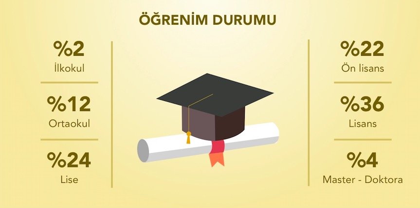 Ücretsiz bir CV hazırlama aracı olarak hizmet veren Cvlogin, en çok Türkiye'den kullanırken, ülkemizi Hindistan, İspanya ve ABD takip ediyor. Eğitim durumlarına baktığımızda ise en çok yüzde 36 ile lisans mezunları Cvlogin ile CV hazırlarken, lise mezunları yüzde 24, ön lisans mezunları yüzde 22 seviyelerinde.