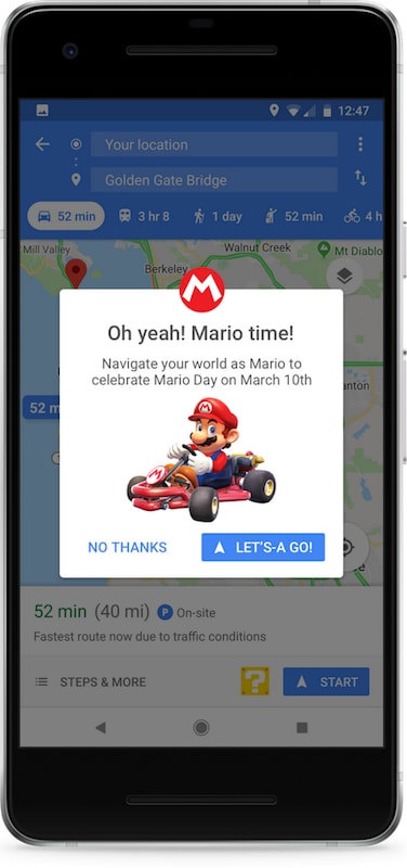 10 Mart ( MAR10Day- MARio) Mario Günü kapsamında Mario, hafta boyunca Google Maps kullanıcılarına eşlik edecek.