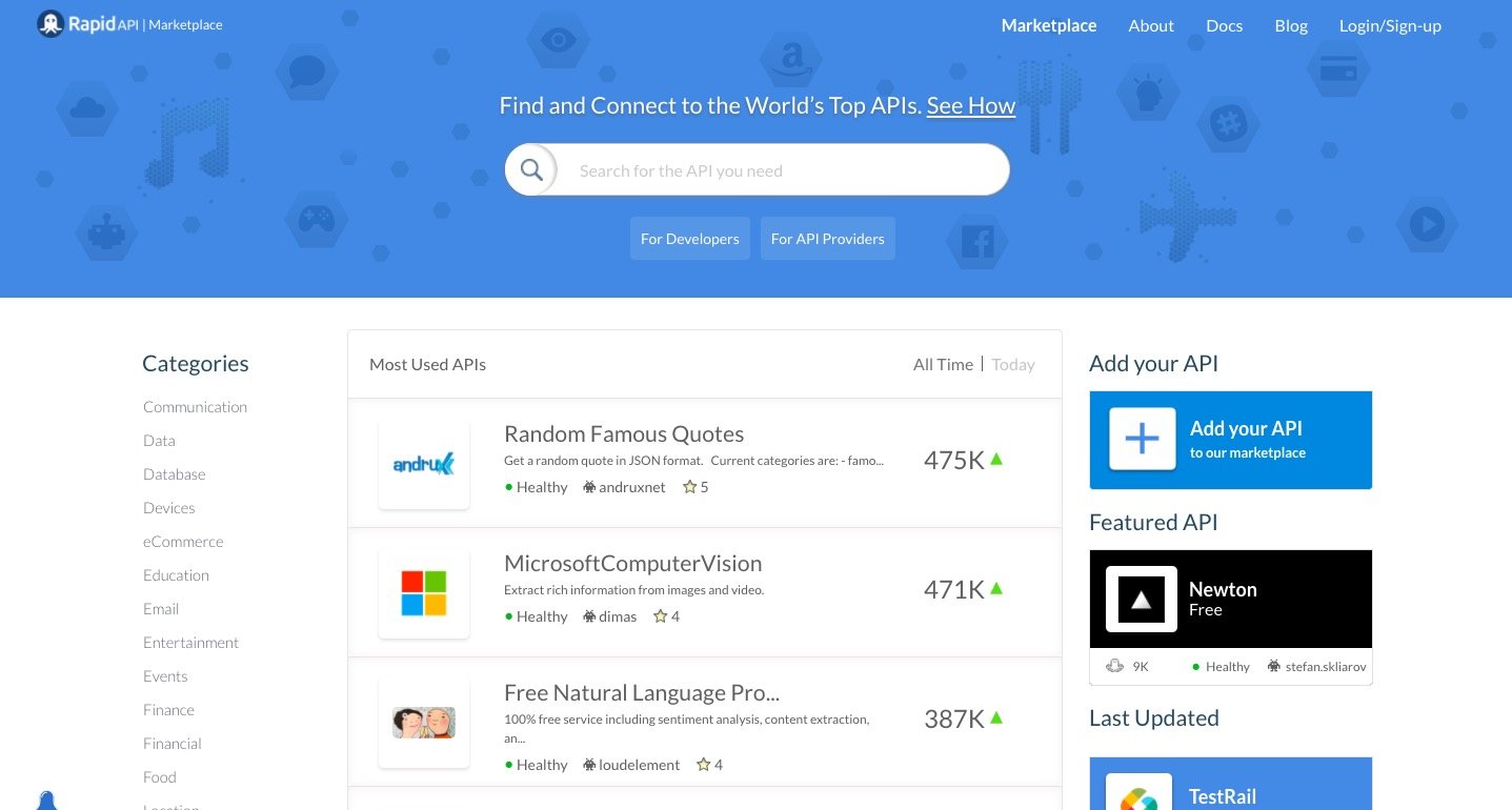 Yazılımcılar tarafından ücretsiz olarak kullanılabilen API pazar yeri RapidAPI, yazılımcılar ile şirketler arasındaki anlaşmalarda satıcıdan yüzde 20 oranında komisyon alıyor. 2016 yılında 3,5 milyon dolar tohum yatırımı da alan RapidAPI, yatırımı yine SV Angel, Green Bay Capital ve Tony Jamous'tan almıştı.