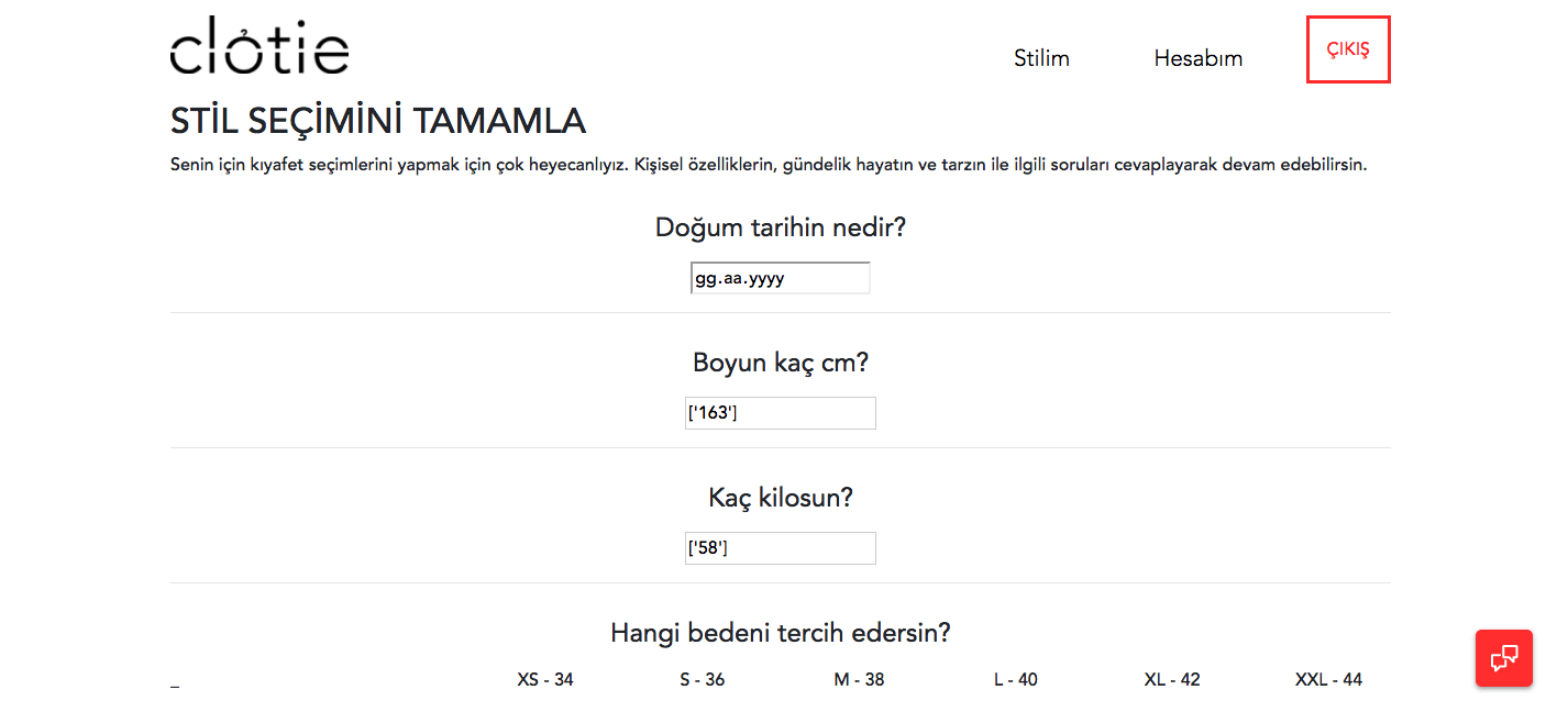 Clotie diğer abonelik modellerinde olduğu gibi öncelikle kullanıcıların, sisteme üye olmasını ardından kendi ile bilgi vermesini istiyor. Burada kullanıcı bir stil testini tamamlıyor. Testteki soruları ile kendi stilini ortaya koyan kullanıcı için geriye seçmesi gerekenler ilk sipariş tarihi ve sipariş sıklığı. Böylece kullanıcılar artık alışverişe zaman ayırmadan düzenli olarak giysi ihtiyaçlarını karşılamış olacak.