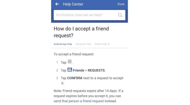 Ekran görüntüsünde yer alan Daha Fazla Bilgi'ye tıklayan kullanıcılar ise Yardım Merkezi'ndeki arkadaşlık istekleri makalesine yönlendiriliyor. Ancak test grubuna dahil olmayan kullanıcılar açıklamada 14 günlük geri sayım ile ilgili olan kısmı görmüyor.