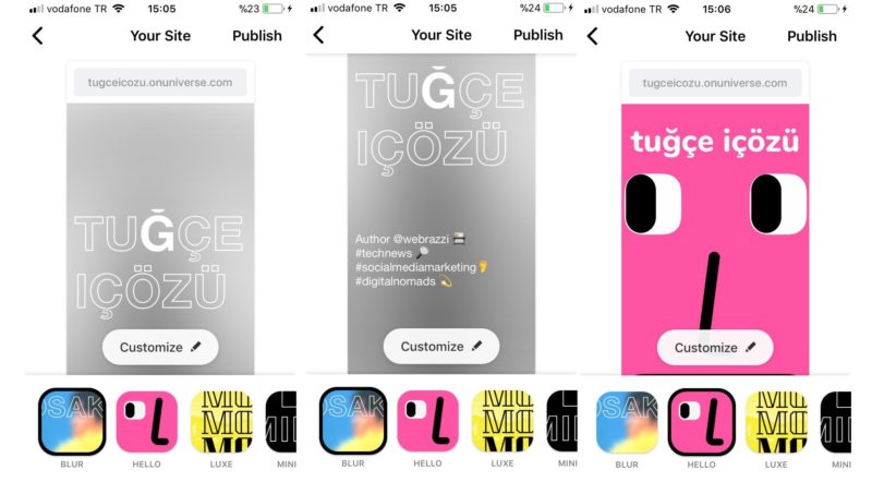 Kullanıcıların mobil uygulamalara olan ilgisi arttıkça, mobil girişimler de çoğalmaya devam ediyor. Kullanıcıların kendilerine mobil cihazlar üzerinden kişisel bir web sitesi oluşturmasını sağlayan Universe de bunlardan biri. Wordpress gibi karmaşık şablonlar kullanmayı tercih etmeyen Universe, bunun yerine mobilde Instagram hesabınız üzerinden kişiselleştirilebilen bir model üzerine çalışıyor.