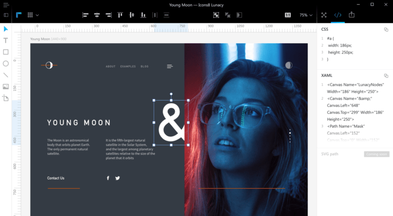 Lunacy'nin onu diğer araçlardan ayıran bir başka özelliği de layerlardaki objelerin CSS ve XAML özelliklerini görebilmeniz. Üstelik herhangi bir objenin özelliğini tek bir tıkla kopyalamanız da mümkün. Programın aynı ekibin geliştirdiği ve tek tıkla çalışmalarınızı paylaşmanızı sağlayan Sketch the Ripper ile entegre olabildiğini de belirtelim.