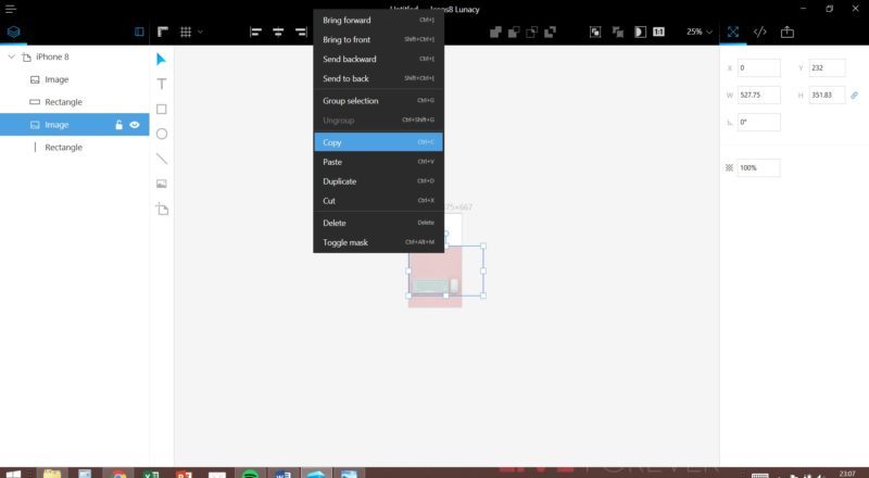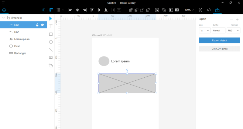 Tıpkı Photoshop gibi Layerlarla hareket eden Lunacy'de metin hizalama seçenekleri ve ızgaraların yanı sıra kopyala yapıştır ve çoğalt gibi komutlar da mevcut.