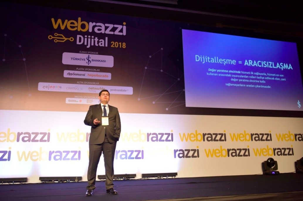 Bugün gerçekleştirdiğimiz Webrazzi Dijital 2018'in konuşmacıları arasında yer alan Türkiye İş Bankası Bireysel Bankacılık Pazarlama Müdürü Burak Sezercan, yeni ekonomide değer yaratmanın kaynağının dijitalleşme olduğunu belirtti. Dijitalleşmenin aracısızlaşma olduğunu dile getiren Sezercan, dijitalleşmenin internet, internet kullanımını sağlayan bilgisayar ve akıllı telefonlar gibi araçlar, büyük veri ve bu veriyi işleyen / anlamlandıran teknolojilerden oluştuğunu paylaştı.