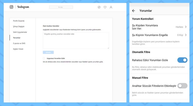 Instagram'ın yorum ayarları masa üstünde ve uygulamada farklı özelliklere sahip, üstelik masa üstünde açtığınız bir ayarın mobil uygulamada karşılığı yok. Aynı şekilde uygulamada açtığınız bir ayarın, masaüstünde de devamlılığı sağlanmıyor. Birçok yazılım geliştiricinin hata olarak adlandırdığı bu yapı yine de Instagram'ın bilinçli bir yaklaşımı olabilir.