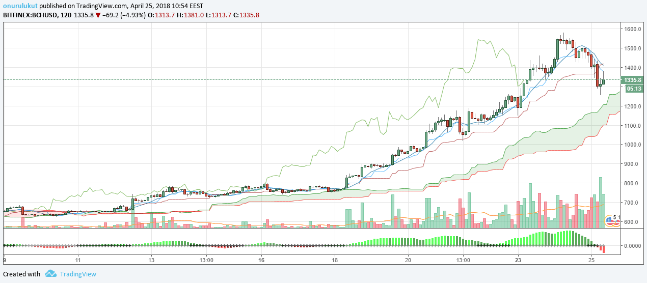 Bitcoin-cash ise 15 Mayıs çatallanması öncesi neredeyse fiyatını iki kat arttırdı ve 1500 dolar seviyelerini test etti.