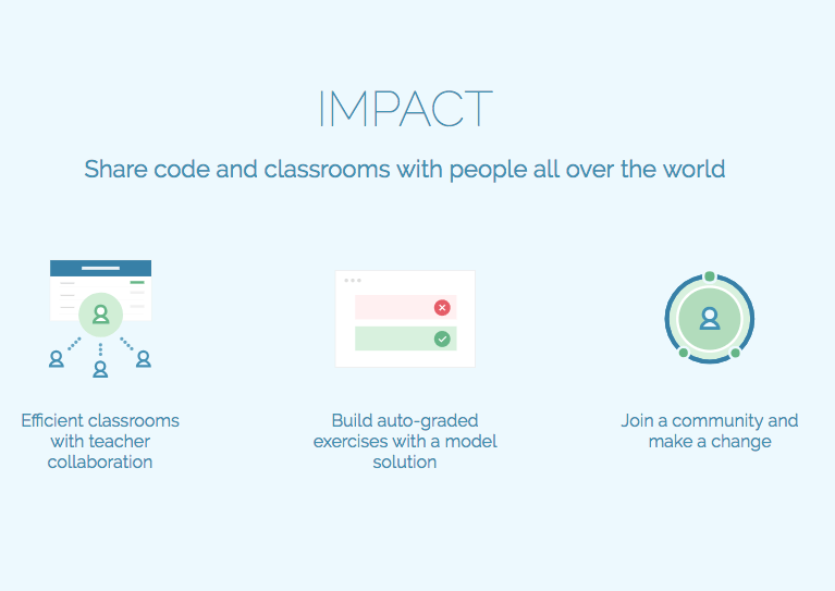Repl.it'in en değerli özelliklerinden biri de eğitim amaçlı kullanılabiliyor olması. Classroom özelliği sayesinde ücretsiz olarak 200'e kadar öğrenciye aynı platform üzerinden eğitimler verilebiliyor ve öğrencilerin gelişimleri takip edilebiliyor. 200 öğrenciye kadar ücretsiz olması oldukça değerli. Tabi ki alan, dosya boyutları, hız gibi bazı özellikler daha sınırlı oluyor fakat başlangıç için oldukça yeterli diyebiliriz. Eğer bir devlet okulu olarak başvurursanız tüm özelliklerin (öğrenci sayısı da dahil) sınırsız olarak ücretsiz erişilebiliyor olması da Repl.it'in sosyal sorumluluk amacıyla yaptığı önemli bir hareket. Fiyatlandırma bölümünde "Classroom K-12" paketi, devlet okulları ve kar amacı gütmeyen kuruluşlara ayrılmış durumda.