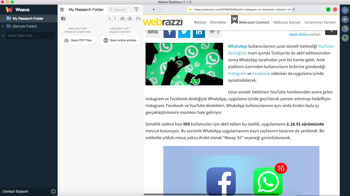 Platformu kullanmak için bilgisayarınıza herhangi bir kurulum yapmanıza gerek kalmıyor. İsterseniz basit bir Chrome eklentisiyle Weava'yı online olarak kullanabiliyorsunuz. Eğer "bilgisayarımda da bulunsun" diyorsanız Mac'iniz için App Store'dan Weava uygulamasına da ulaşabiliyorsunuz.