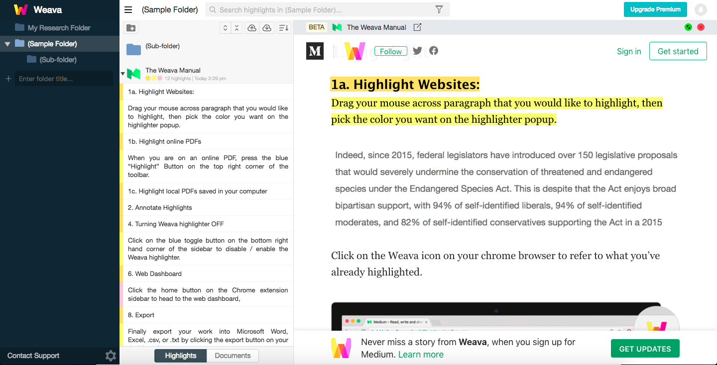 Weava'nın Chrome eklentisini kullananlar, açtıkları bir sekmede istedikleri yazının üstünü renklendirebiliyorlar. Bunun için renklendirmek istedikleri kısmın üstünü çiziyor ve çizdikleri anda altta çıkan renklerden herhangi birini seçiyorlar. Akabinde ortaya sıkıcı siyah-beyaz bir sayfa yerine, rengarenk bir sayfa çıkıyor.