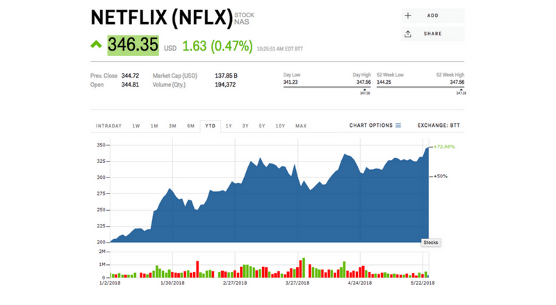 Bu yıl orijinal içeriklere 8 milyar dolar harcayacak olan Netflix, nakit sıkıntısının 3 - 4 Milyar dolara yükselmesini bekliyor. Netflix, bu yıl S&P 500 endeksindeki yüzde 0.72'ye oranını geçerek yüzde 72.66 yükseldi.