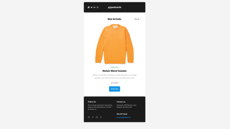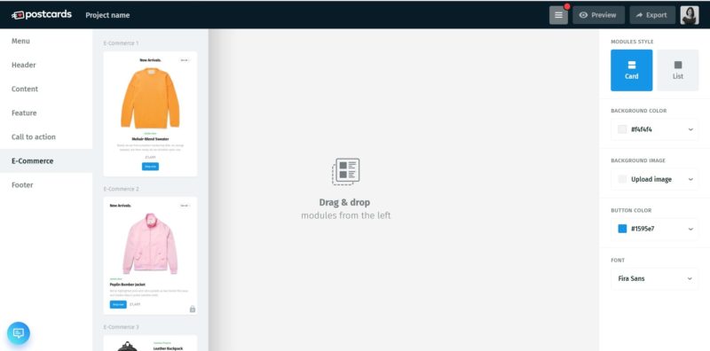 Eğer e-posta pazarlamasını satış için kullanıyorsanız şablona e-ticaret modülünü yerleştirmeniz de mümkün.