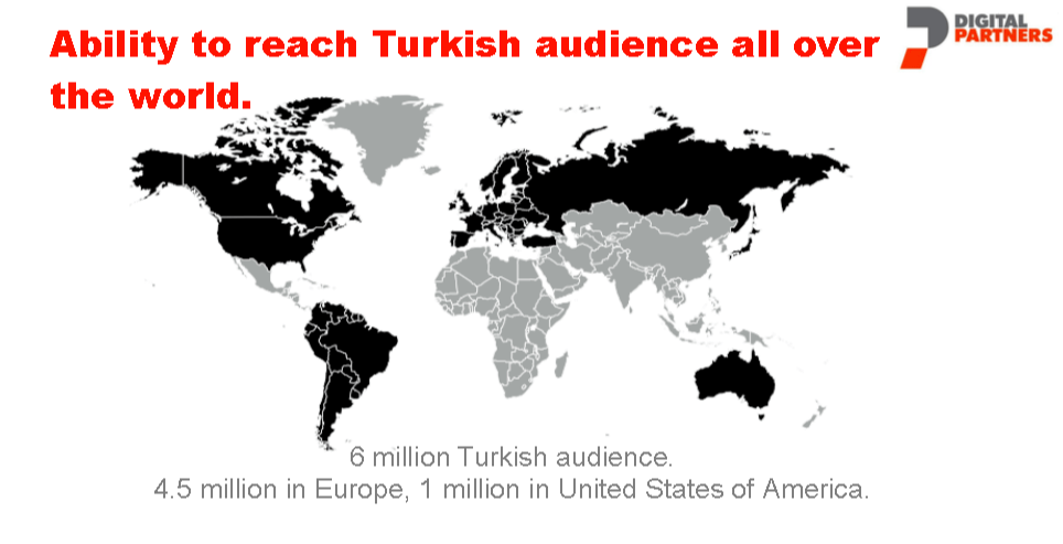 Global pazarda dijital pazarlama alanında başarı elde edebilmek içinse her pazarın birbiriyle bağlantı halinde olmasının gerekliliğinin yanında, global partnerler ile fark yaratmanın önemi vurgulandı. Tunç Günbey, dijital pazarlamada global ekosistemi oluşturabilmek için yerli medya ve uluslararası medyanın iş birliği halinde çalışması gerektiğini sözlerine eklerken, medyanın tüm dünyada ulaşabildiği Türk takipçilerle ilgili rakamları da katılımcılarla paylaştı. Tüm dünyada ulaşılan Türk kitlesi 6 milyon iken bu sayının 4,5 milyonu Avrupa'dan, 1 milyonu ise Amerika Birleşik Devletleri'nden geliyor.