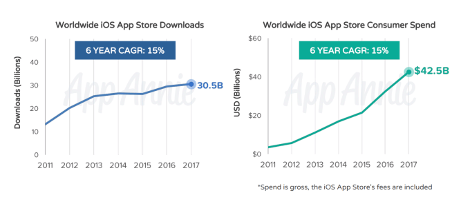 App Annie'nin öngörülerine göre 2022 yılında Apple uygulama marketi gelirleri 2017 yılına göre yüzde 80 büyüyerek 75.7 milyar dolara ulaşacak.