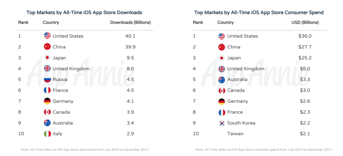 Apple Store'dan indirilen uygulama sayısı ve elde edilen gelirde Çin'in ne kadar büyük rol oynadığı tartışılmaz bir gerçek. Tüm bunlara rağmen şaşırtıcı bir şekilde Apple'ın bir numaralı ülkesi Çin değil, Amerika Birleşik Devletleri. Raporda ABD'den yapılan 41,1 milyar adet indirme sayısına karşılık Çin'de 39.9 milyar adet indirme yapılmış. ABD aynı dönemde Apple Store'da 36 milyar dolar harcarken Çin 27.7 milyar dolar harcamış. Önümüzdeki dönemde Çin'in bu farkı hızla kapatacağından eminim.