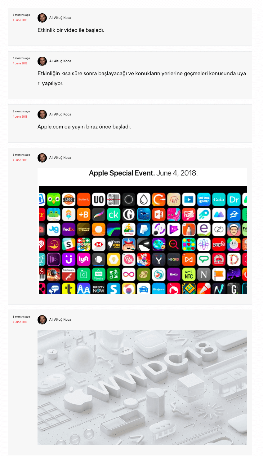 Apple yazılım geliştirici konferansı WWDC‘yi bu yıl 4-8 Haziran tarihleri arasında San Jose, California’da düzenliyor. TSİ 20:00’da başlayacak olan etkinlik için geri sayım başladı. Türkiye İş Bankası‘nın katkılarıyla sizlerle paylaşacağımız WWDC 2018 etkinliğiyle ilgili güncellemeleri bu yazının altında sizlerle hızla paylaşacağız.