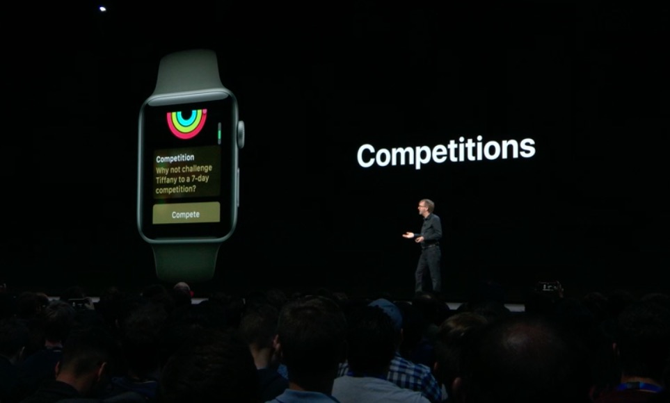 Cook'un sahneye davet ettiği Kevin Lynch, Watch OS'un sağlık ve iletişim alanında yenilendiğini ifade etti. 6 terabayt veriyi işleyebildiklerini söyleyen Lynch, bu veriyi anlamlı bir şekilde kullanabilmek adına yeni bir sistem getirdiklerini de söyledi. Bu kapsamda günlük olarak koçluk yapmaktan ve kişiselleştirilmiş hedefler oluşturmaktan bahseden Lynch, yarışma isimli yeni bir özelliği yayına aldıklarını da duyurdu.