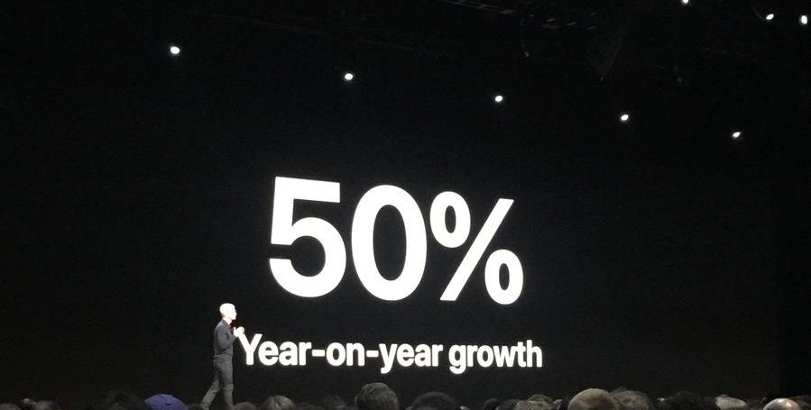 Apple TV'nin geçtiğimiz yıl içerisinde yüzde 50 büyüdüğünü Tim Cook sunumun başında paylaşmıştı.