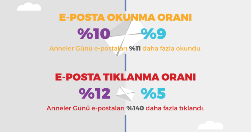 Markaların Anneler Günü'nde müşterilerine yüzde 130 oranında daha fazla e-posta gönderdiğini saptayan Related Digital, elindeki verilere göre tüketicilerin Anneler Günü kampanya mesajlarını Babalar Günü'ne oranla yüzde 11 daha fazla okuduğunu belirtiyor.