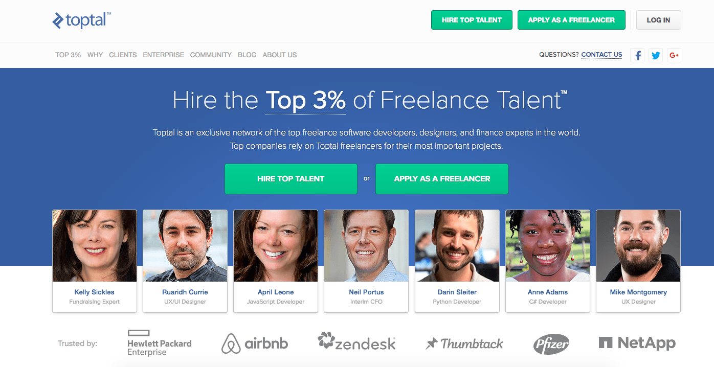 Toptal, girişimleri, işletmeleri ve kuruluşları dünyanın en iyi freelance yazılım geliştiricileri, tasarımcıları ve finans uzmanları ile buluşturmayı hedefliyor. Bu profesyoneller tam zamanlı, yarı zamanlı veya saatlik olarak ekiple birlikte çalışabiliyorlar. Günümüzde hem büyük hem de küçük ölçekli birçok şirket, aday nitelikleri, takım dinamikleri ve finansla ilgili dış kaynak kullanımı zorluklarıyla karşı karşıya kalıyor. Toptal ise oluşturduğu pazar yeri ile bu zorlukların üstesinden gelinmesine yardımcı olmayı hedefliyor.