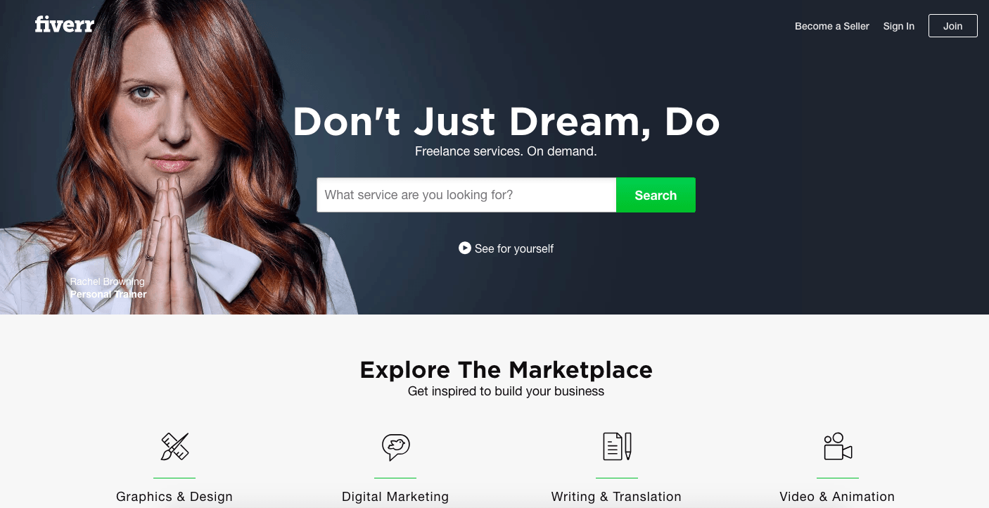 Fiverr, yaptıkları işi seven insanlardan milyonlarca geliştiriciyi bünyesinde bulunduran online bir pazar yeri. Fiverr yaptığı işi bireylerin ve işletmelerin her şeyi, rakipsiz bir değerde elde etmesinin en kolay yolu olarak tanımlıyor. Fiverr, yaratıcı ve profesyonel hizmetler için dünyanın en büyük pazarlarından biri diyebiliriz. Kişiye, eğlenceli ve ilginç işlerden, temel iş hizmetlerine kadar çeşitli kategorilerde gezinme imkanı sunuyor. Dünya çapında 200'den fazla ülkede 100'ün üzerinde farklı kategoride 3 milyondan fazla işi bünyesinde bulunduruyor.