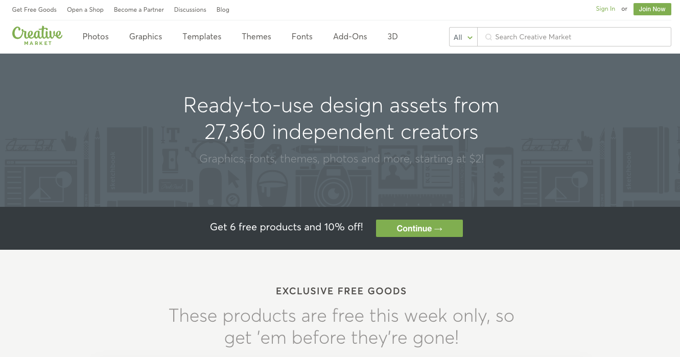 Creative Market, dünyanın her yerinden bağımsız reklamlar tarafından oluşturulan, Yazı Tipleri, İkonlar, Grafikler, Çizimler, WordPress Temaları, Web Sitesi ve Baskı Şablonları ve daha fazlası gibi el yapımı tasarım içerikleri bünyesinde barındıran bir platform olarak faaliyet gösteriyor.