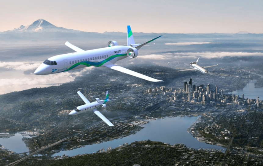 Zunum Aero: 2013'ten beri 10 ila 50 koltuklu hibrid elektrikli bölgesel uçak ailesi üzerinde çalışmakta olan Boeing ve JetBlue tarafından desteklenen bir şirket. Ekim 2017'de, 2020'de uçmayı hedefleyen 12 koltuklu bir uçak için geliştirmeye başladılar. Tasarım, kısa yolculuklar için sadece bataryalarla çalışan ve 1 MW ila 4-5 MW arasında değişen bir dizi genişletme jeneratörü içeren bir dizi hibrit kanallı fanı içeriyor. Uçağın menzilini 700 deniz miline uzatmak için iki adet 550kW jeneratörü çalıştırmak için bir gaz türbini kullanılacaktır. Şubat 2018'de Zunum'un ilk prototipini oluşturduğu açıklandı.
