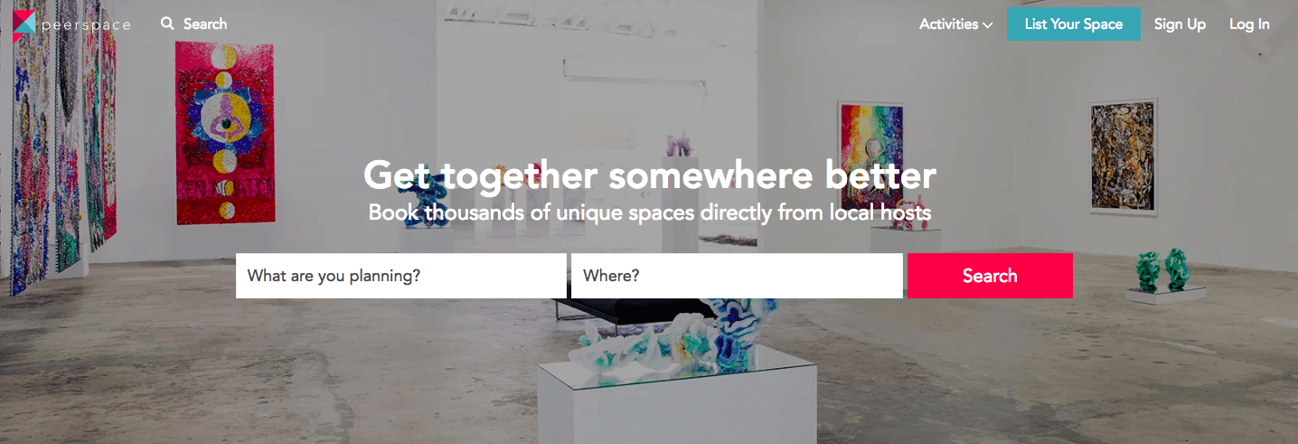 San Francisco merkezli Peerspace, restoran ve kafe gibi yerlere yapılan rezervasyonlardan ziyade parti, toplantı, fotoğraf çekimi ve workshop gibi etkinlikler için uygun mekanlar bulmaya yardımcı oluyor. Girişim, ABD'de 9, dünya çapında ise 12 farklı yerde hizmet veriyor. Peerspace'in aktif olarak kullanıldığı şehirler ise New York City, Paris, Berlin ve Londra olarak açıklanıyor. Platformda 6 binden fazla kiralamaya hazır mekan bulunuyor. Peerspace, listelenmeden önce her konumun gözden geçirilmesi için ilgili mekana bir çalışanını gönderiyor.