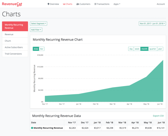 RevenueCat, mobil uygulama geliştiricilerinin uygulama içi aboneliklerini takip ve analiz edebildikleri bir araç ve tek yapmaları gereken şey sunulan API'yi uygulamalarına bağlamaları.