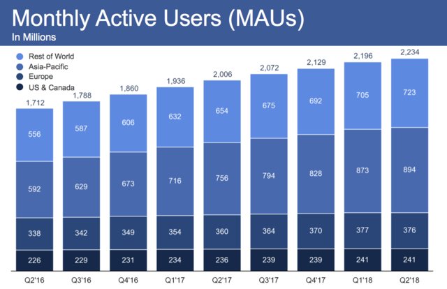 Şirketin bu durumu yaşamasının ikinci nedeni ise Avrupa'da kullanıcı sayısının küçülmesi, ABD ve Kanada'da ise durağanlığını koruması. Facebook Avrupa'da aylık kullanıcı sayısı 377 milyondan 376 milyona gerilerken, 2017'nin dördüncü çeyreğinden itibaren ABD'de 241 milyonda ve Kanada'da ise 239 milyonda takılı kaldı. Üstelik bu durağan bölgelerin Facebook'un en yüksek gelirli iki pazarı olarak öne çıktığını belirtelim. Şirket Kuzey Amerika'da kullanıcı başına 25,91 dolar gelir elde ederken, Avrupa'da bu rakam 8,76 doları buluyor. Şirketin dünyanın geri kalanında kullanıcı başına 1,91 dolar kazandığını düşünürsek, bu yavaşlığın ve durağanlığın şirketin en büyük problemi olduğunu söyleyebiliriz.