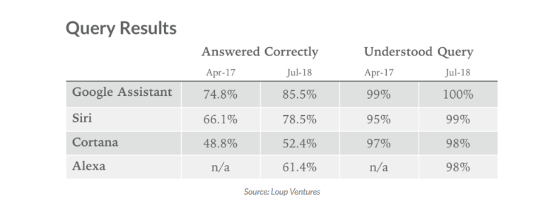 Apple'ın en büyük rakibi Google'ın sanal asistanı ise yüzde 100'lük soruları anlama oranıyla inanılmaz bir rekor kırarken aynı zamanda yüzde 85,5'lik doğru cevap oranıyla da Siri'yi geride bırakıyor. Amazon'un Alexa'sı ve Microsoft'un Cortana'sı için testlerin pek adil olmadığı söyleniyor.