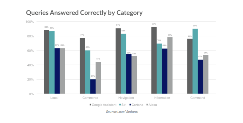 The Loup Ventures analistleri tarafından her yıl yapılan sanal asistan testleri sonuçları paylaşıldı. Bu yıl paylaşılan testlerde yine Google'ın arkasından geliyor olsa da Siri önemli bir ölçüde iyileşme göstermiş. Yapılan test, önde gelen sanal asistanlara çeşitli alanları kapsayan 800 soru sorularak yapılıyor. Hem asistanların kendi içindeki gelişimleri hem de rakiplerine karşı gelişimleri böylece takip ediliyor.