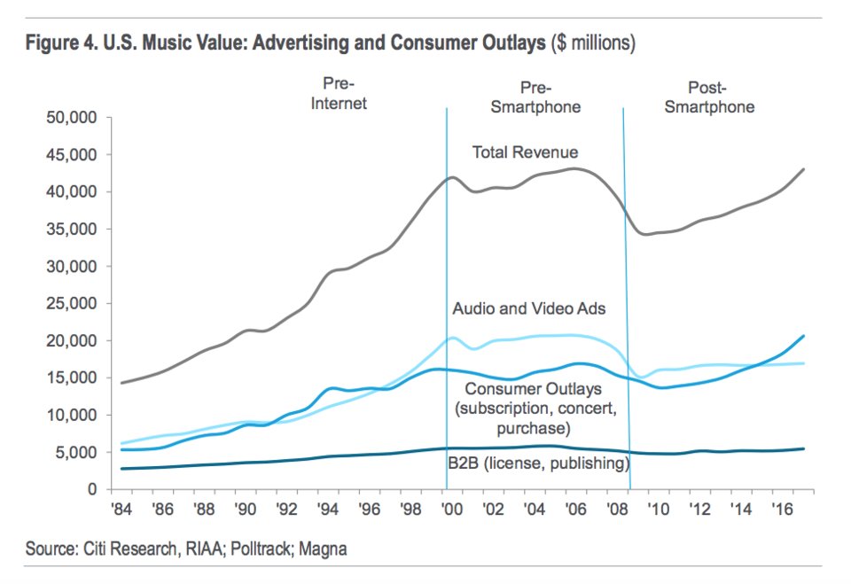 Pazartesi günü, analist Jason B. Bazinet önderliğinde yayınlanan Citigroup raporuna göre ise müzik endüstrisinin 2017'deki 43 milyar dolarlık gelirinden sadece yüzde 12'si sanatçılara gitti. Bu da ortalama 5 milyar dolara tekabül ediyor. Üstelik sanatçılar bu kazancı paylaştıkları müziklerinden, yayınladıkları albümlerden değil, turnelerden ve konserlerden elde ediyorlar. Paranın büyük bir kısmının aracılara gittiğini söylemek mümkün. Geri kalanı da AM/FM radyo, online platformlar ve kayıt etiketleri gibi dağıtım hizmetleri için harcanıyor.