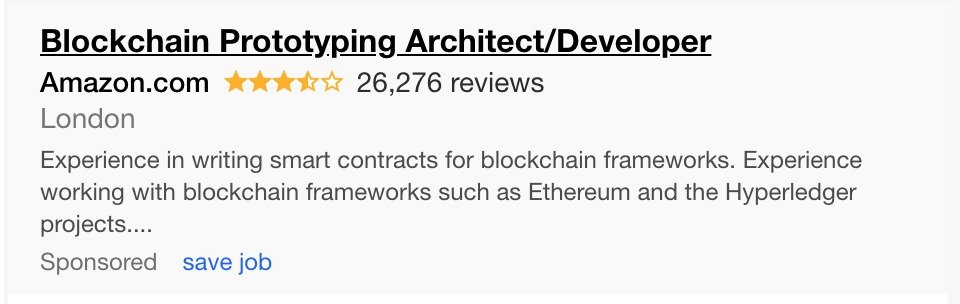 Amazon'un sitesinde bulunan "Blockchain Prototyping Architect/Developer" iş ilanı da bunun göstergelerinden biri. Daha önce Amazon, IBM ve Oracle'ın blockchain tabanlı hizmetler sunmasıyla beraber kendi blockchain hizmetlerini “blockchain as a service” ismi ile duyurmuştu.