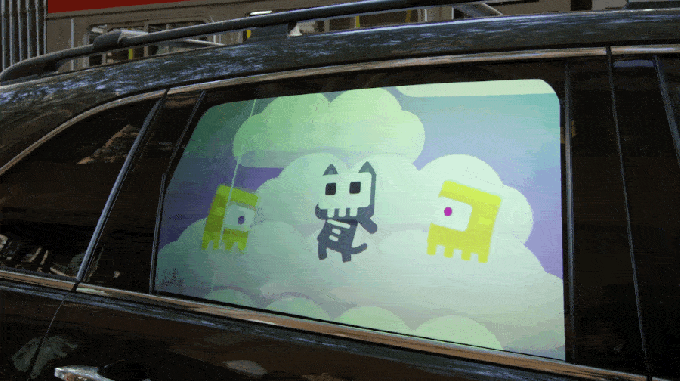 Grabb-It reklamları araba camında oynatabilmek için arabanın sağ arka penceresinin içine bir malzeme ile minik bir projeksiyon malzemesi entegre ediyor. Bu malzeme çok ince olduğu için pencerenin açılmasını engellemiyor. Arabanın içine küçük bir projektör monte ediyorlar ve pencereden dışarı görünecek şekilde reklamları yansıtıyorlar. Üstelik reklamlar doğrudan güneş ışığının geldiği bir yerde bile net bir şekilde görünüyor. Standart projeksiyonlar gibi karanlık bir alan gerekmiyor.