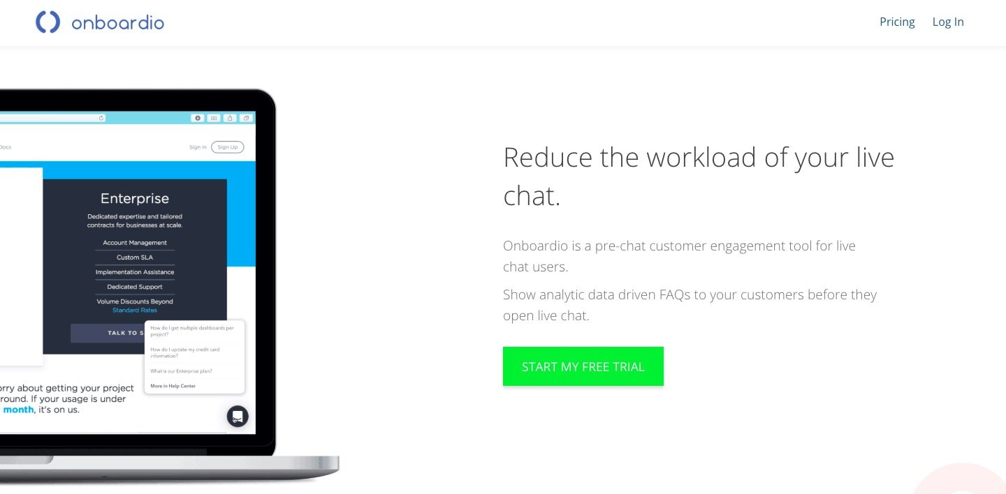 Canlı sohbet kullanan işletmelerin kullanıcılarının analitik datasını gözlemleyerek sorabileceği potansiyel soruların cevaplarını daha soru sorulmadan bulabileceği bir girişim olan Onboardio, işletmelerin sohbet yükünü azaltırken, müşteri etkileşimini ve dönüşüm oranının artmasına yardımcı oluyor.