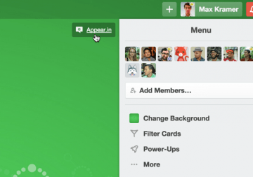 appear.in Power-up'ı Trello panonuzdan tek Tıkla video sohbet başlatmanızı sağlıyor. Trello üzerinden toplantı ve fikir alışverişi gerektiren konularda konuşmanızı sağlayan bu power-up, sohbete 8 kullanıcıya kadar kişiyi dahil etmenizi de mümkün kılıyor.
