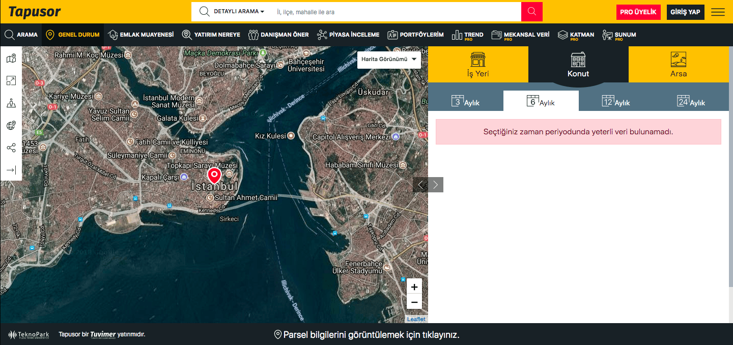 Tapusor.com, tüm Türkiye'de herhangi bir gayrimenkulle ilgili ihtiyaç duyulan kapsamlı verilere tek bir platform üzerinden erişilmesini sağlayan platform olarak hizmet veriyor.