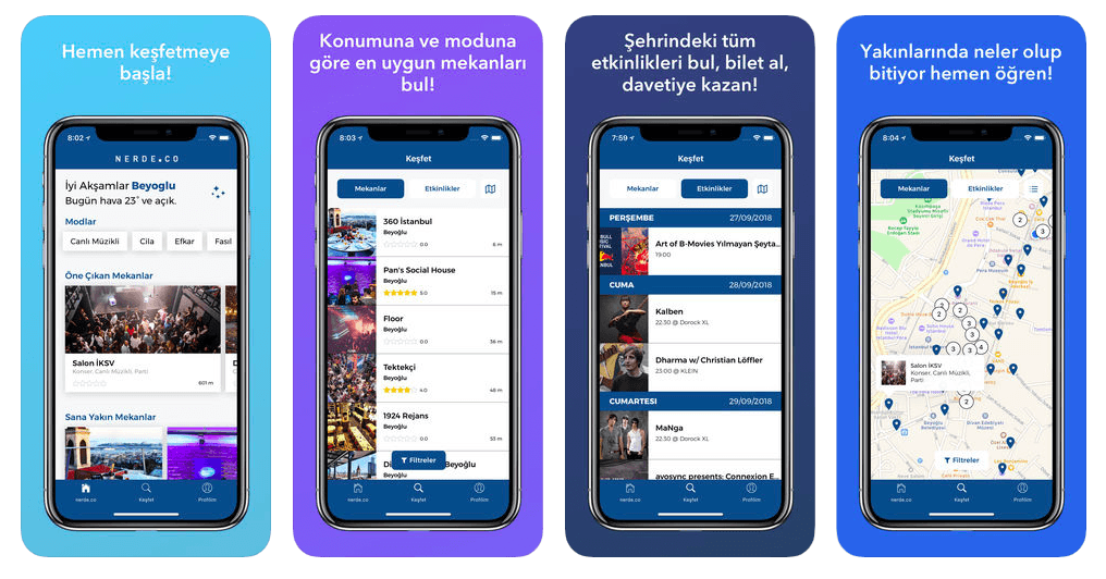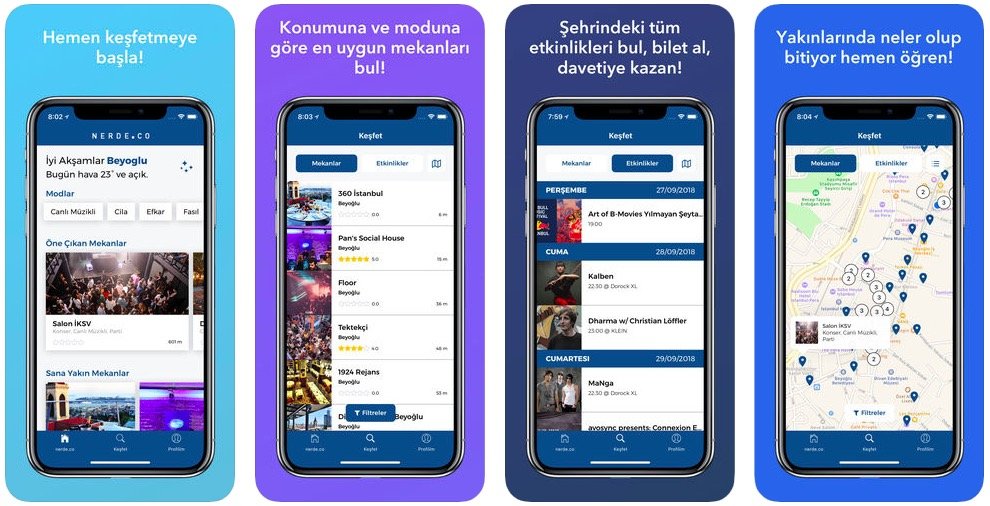 Kullanıcıların diledikleri özelliklerdeki mekanları keşfedip bu mekanlara rezervasyon, yorum ve puanlama yapabildiği nerde.co, mekan işletmecileri ve müşterileri WhatsApp üzerinden direkt olarak buluşturabiliyor. Platform aynı zamanda, kendi kullanıcılarına özel olarak olarak belirlediği konserlere, festivallere ve diğer etkinliklere indirimli bilet ve davetiye de sağlıyor. Nerde.co'nun Mısır Apartmanı’nda yer alan ofisinde etkinlikler düzenlendiğini de belirtelim.